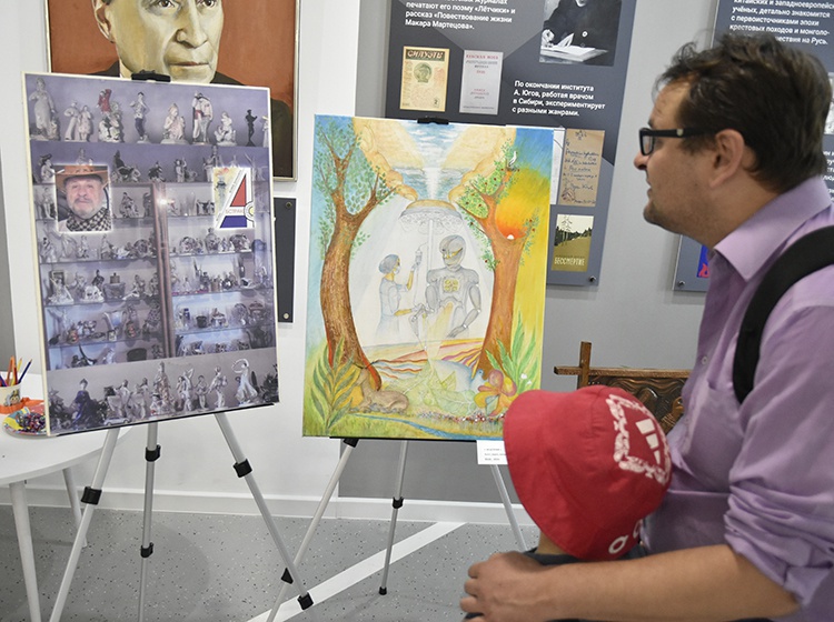 Персональная выставка многогранного автора открылась в фойе библиотеки.