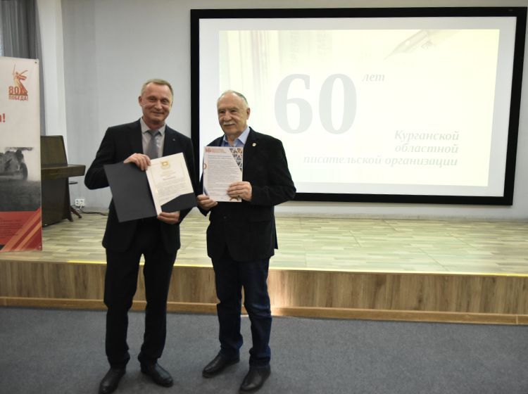 На торжестве подвели итоги конкурса «Пишем о СВОих», объявленного Курганской областной организацией Союза писателей России, Курганским областным Советом ветеранов и Генеральным партнёром – ООО «Типография Дамми». Конкурс провели в год 80-летнего юбилея Победы советского народа в Великой Отечественной войне, объявленный Президентом РФ В. В. Путиным Годом Защитника Отечества.