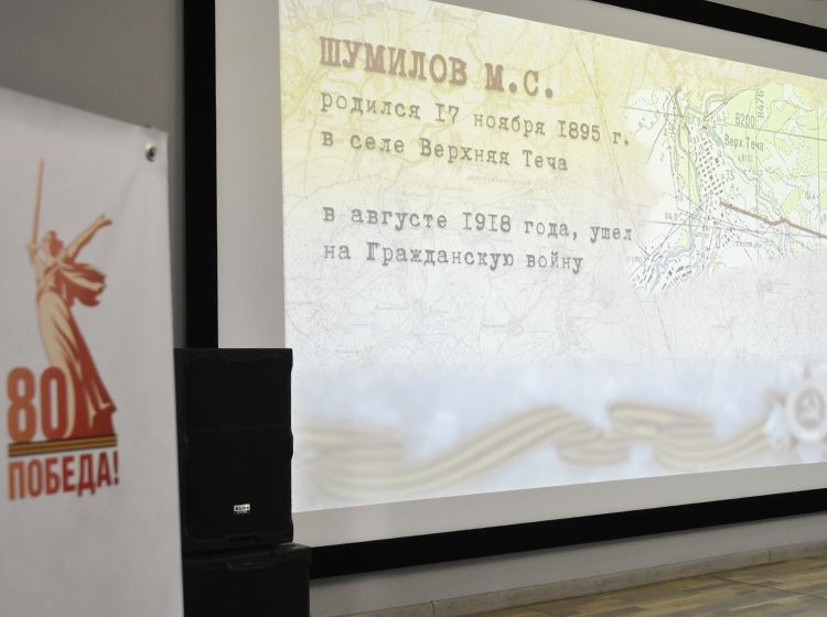 В библиотеке – новый патриотический урок «Боец пяти войн». Медиаурок посвящён интерактив 130-летию со дня рождения легендарного земляка-героя Михаила Степановича Шумилова.