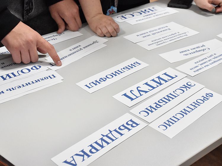 Следующий этап – квиз «Грамотеи». Здесь ребята проверяли свои знания по правилам орфоэпии, грамматики, правописанию местоимений, отгадывали загадки и ребусы. Подбирали определения к таким словам, как манускрипт, фолиант и другие.
