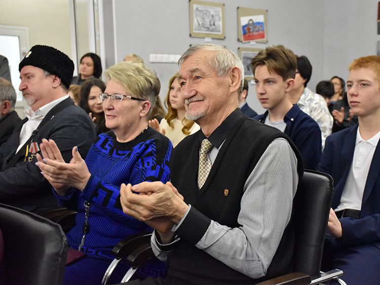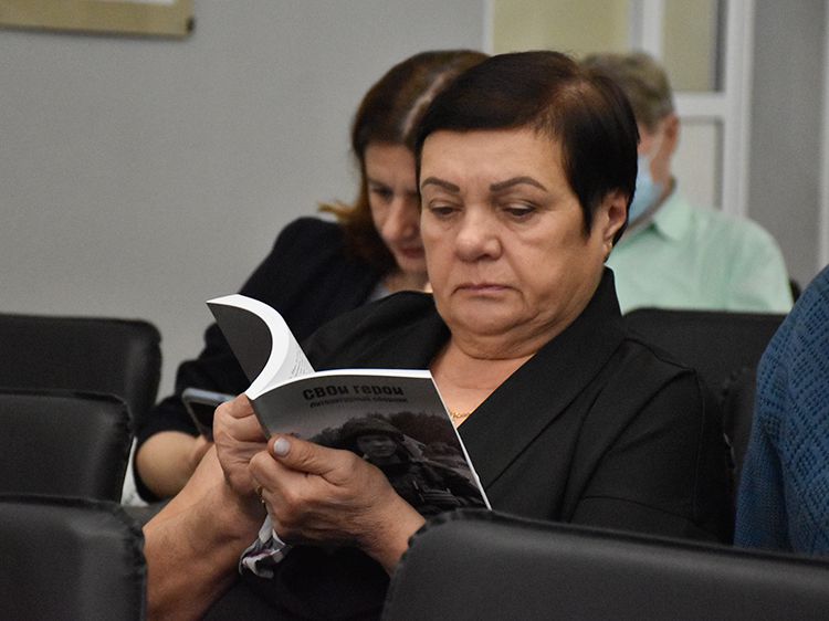 В зрительном зале – родные и друзья героев, у каждого внутри своя боль. Среди родных – Людмила Агаева, мама лейтенанта Руслана Агаева, отдавшего свою жизнь за Родину. Людмила Агаева – соавтор сборника «СВОи герои». Она написала рассказ о сыне, рассказ, наполненный гордостью и пронизанный материнской болью.