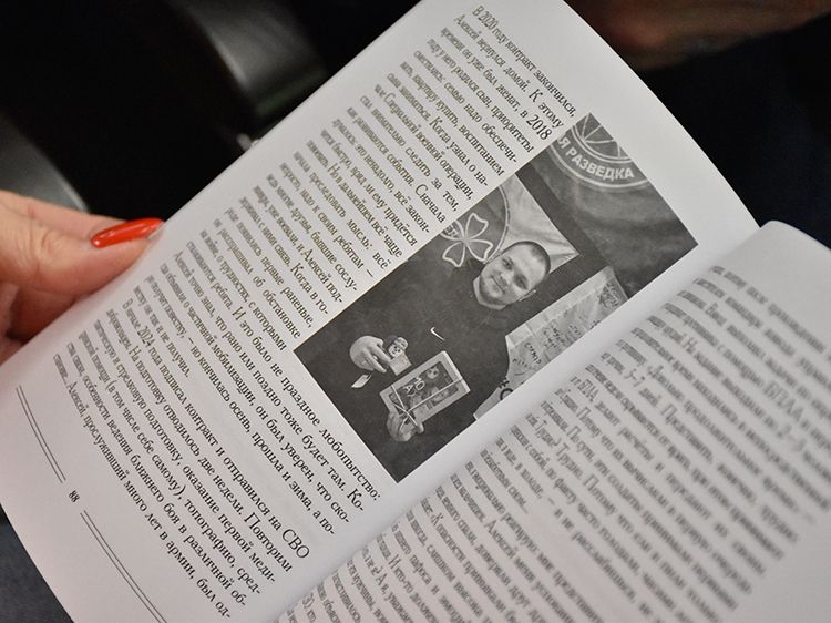 – Я написала в книге о том, каким был мой сын, наш сын. Он был обычным ребёнком, подростком, обычным мальчишкой – озорной, смышлёный, любящий, заботливый, какими бывают любимые детки. И как из этого худенького озорного мальчика вырос такой настоящий мужчина, верный своему слову, долгу, присяге. На втором курсе, когда Руслан заключил контракт с Министерством обороны, он позвонил к нам домой и сказал: «Мама, ну всё, я сейчас не принадлежу ни тебе, ни папе, ни себе. Теперь я принадлежу Министерству обороны, Родине»… В книге моя любимая фотография (показывает – авт.), она мне очень дорога, она была сделана в марте 22 года, когда мой сын познал весь ужас, весь ад войны, здесь у него в глазах эта война, когда они заходили под Киев, когда у него погибли товарищи, когда подорвался их БТР, когда он оказывал раненым помощь… Он сапёр, сапёры всегда идут первыми, они либо прокладывают путь, разминируют дороги, поля, либо, наоборот, минируют от врагов, чтобы враг не смог пройти. Он всегда был первым, – поделилась Людмила Агаева.