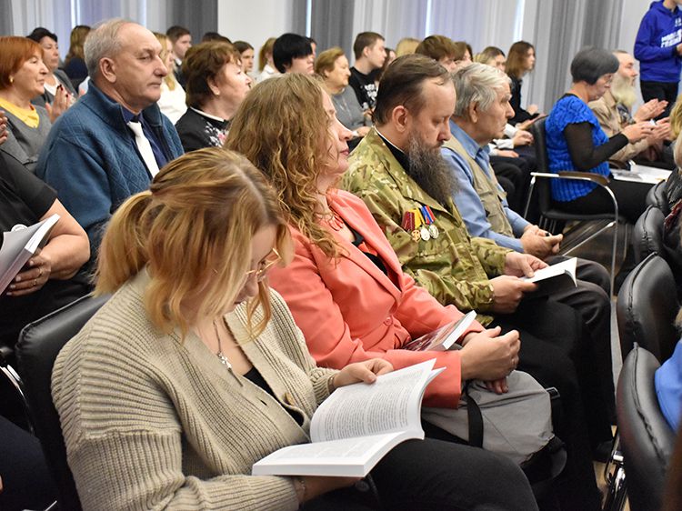 Увидеть новый литературный сборник «СВОи герои», почтить память павших героев и выразить поддержку нашим бойцам пришли курганские школьники, кадеты, студенты, ветераны боевых действий, участники СВО, родственники погибших ребят, представители Правительства Курганской области, ветеранских организаций, силовых структур, общественных организаций Кургана и округов и, конечно, авторы сборника.