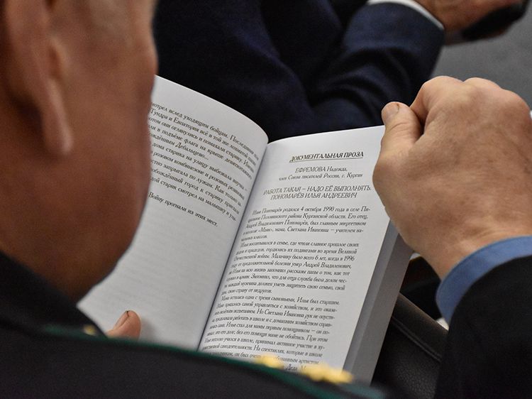 На встрече для гостей Юговки авторы сборника зачитывали свои строки. Эмоциональности презентации придало музыкальное сопровождение Народного коллектива вокальной группы «Неслужебное задание» Пограничного управления ФСБ России по Курганской и Тюменской областям, видеокадры военной хроники и воспоминания бойцов.